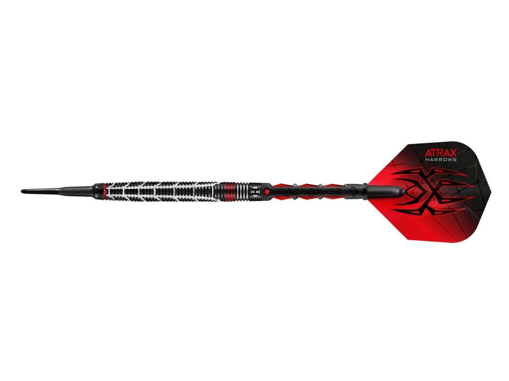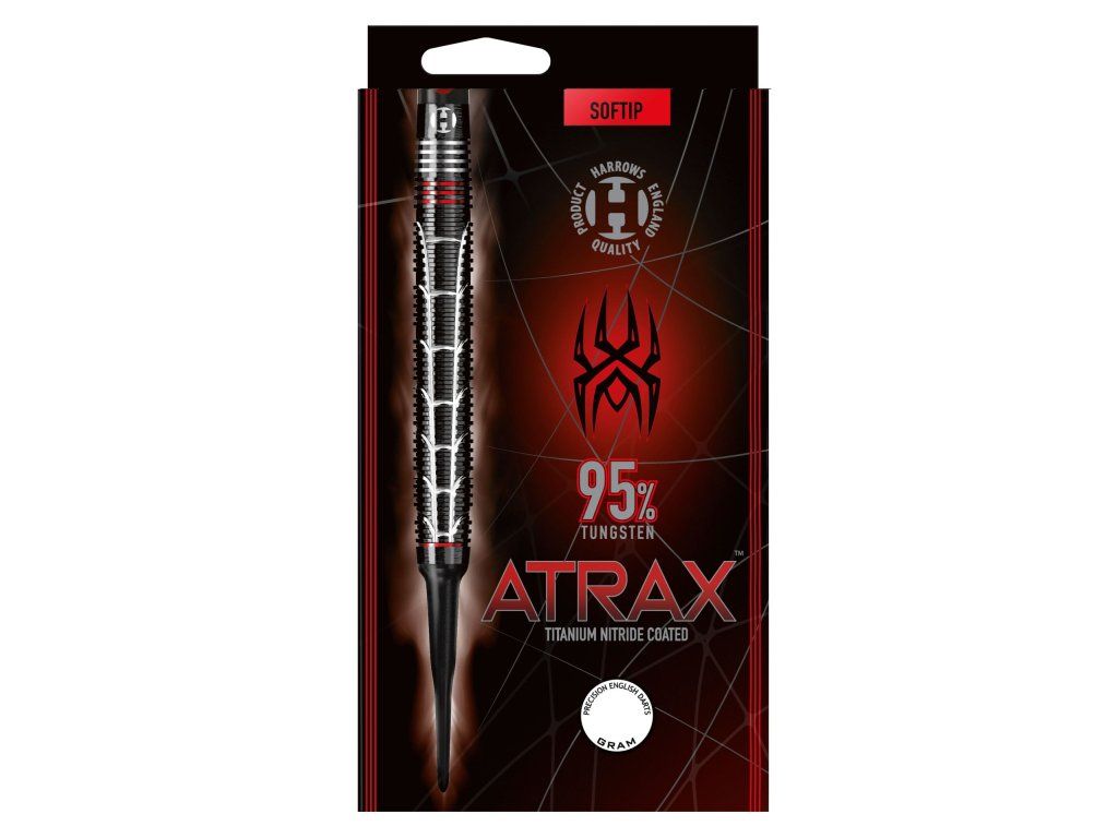 Prémiová šipka z 95% wolframu má originální vzhled, a díky prstencovým zářezům jedinečný grip.Uhrančivý vzor ve stylu Atraxe (pavouk z rodu sklípkanů) byl vyfrézován na prvotřídních CNC strojích. Černá, odolná vrstva nitridu titanu spolu s metalickou červení podporují podmanivý vzhled těchto šipek.