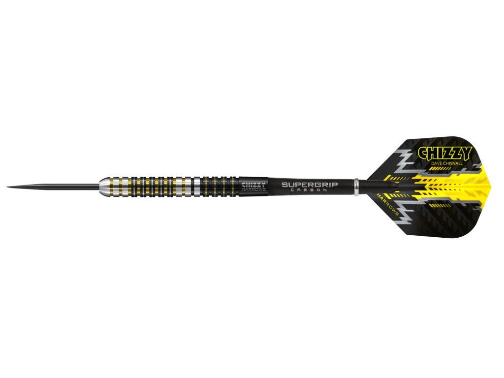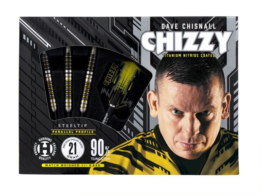 Těsná spolupráce světově známého hráče Chizzyho a designérského týmu Harrows dala vzniknout jedinečným šipkám, které dokonale vyhovují hráčskému stylu tohoto šampiona.(Dave Chisnall zvaný Chizzy)Designéři nejdřív po celé délce paralelního válce z 90% wolframu vyfrézovali hluboké, čtyřhranné drážky. Poté Dave požádal o trochu větší přilnavost, která by mu dodala jistotu v pozdějších fázích hry, kdy tlak narůstá. Proto byla šipka pokovena černým nitridem titanu a tým jí následně přidal 9 mikrodrážek v bodech, kde se Chizzyho prsty dotýkají šipky při odhodu.