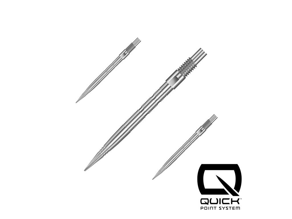 Quick Points jsou nyní k dispozici v délkách 26 mm, 30 mm, 35 mm a 40 mm, což hráčům poskytuje celou řadu délek, které vyhovují jakémukoli stylu házení. K dispozici jsou také v prémiových povrchových úpravách – přírodní, černá a nyní i zlatá!