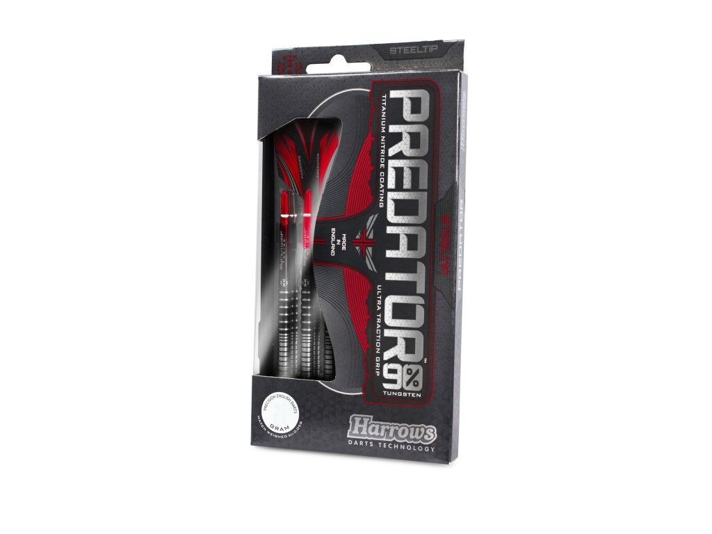 Barel wolframových šipek Predator, který je rozdělen na tři prominentní zóny, uspokojí všechny hráče, ať už upřednostňují přední, střední, anebo zadní uchopení šipky.Barel dobře padne do ruky a jeho zužující se tvar umožní zachovat konzistentní polohování prstů. Povrchová úprava černým nitridem titanu dodává šipce eleganci a styl.