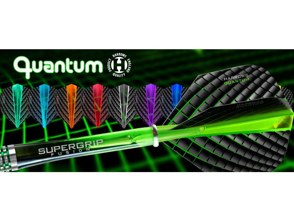 Jako základní materiál pro vývoj nových letek Quantum posloužil revoluční 3D UV laminát z dílny Harrows. Ultratenký 100mikronový materiál ve spojení s barevně výrazným středem přináší větší tuhost a bezkonkurenčně atraktivní vzhled.Vyberte si tu svoji z dvanácti oslnivých barev.