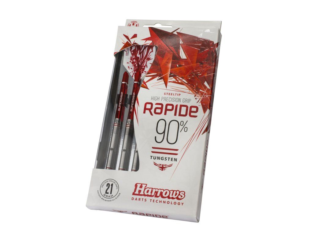 Šipky Rapid byly vyvinuty pro opravdové hráče. K mání jsou dva typy barelů – s rovným a vpředu rozšířeným profilem. Oba nabízejí prstencově i mřížkově vroubkované gripy. Steelová řada je v nabídce od 21 do 26 gramů, softové řada v 16g a 18g provedení, tak aby si každý hráč i styl přišel na své. Barely šipek Rapid byly precizně opracovány za použití nejnovější CNC technologie a ozdobeny výraznými červenými proužky. Šipky s váhovou přesností +/-0,5 g jsou doplněny násadkami Supergrip a novými letkami Rapide flights.Doplňkové parametry