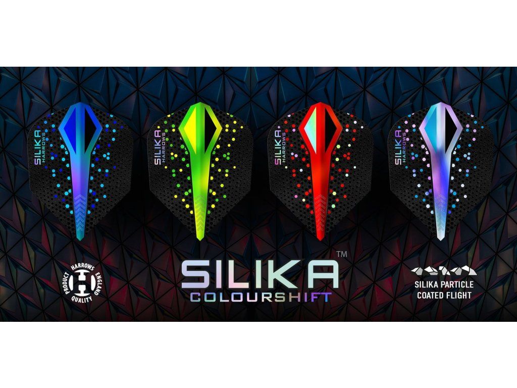 Letky Silika Colourshift jsou k mání ve 4 základních barvách - modrá, zelená, červená a stříbrná - a dále v limitovaných edicích věnovaných nejslavnějším hráčům PDC.