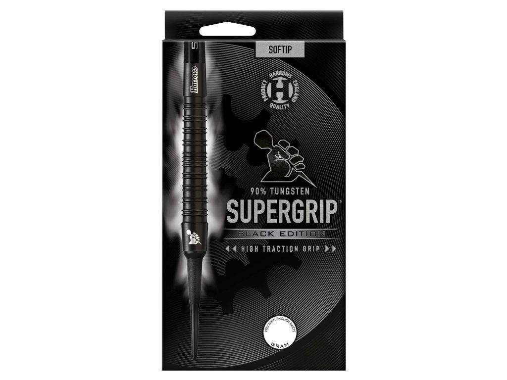 Šipky Supergrip vyrobené z 90% wolframu jsou designované na míru profesionálům, kteří vyžadují drsnější povrch, s ním dokáží lépe udržet konzistentnost svých odhozů. Inovovaný model v černé edici je doplněn robustními násadkami a černo stříbrnými letkami.Doplňkové parametry