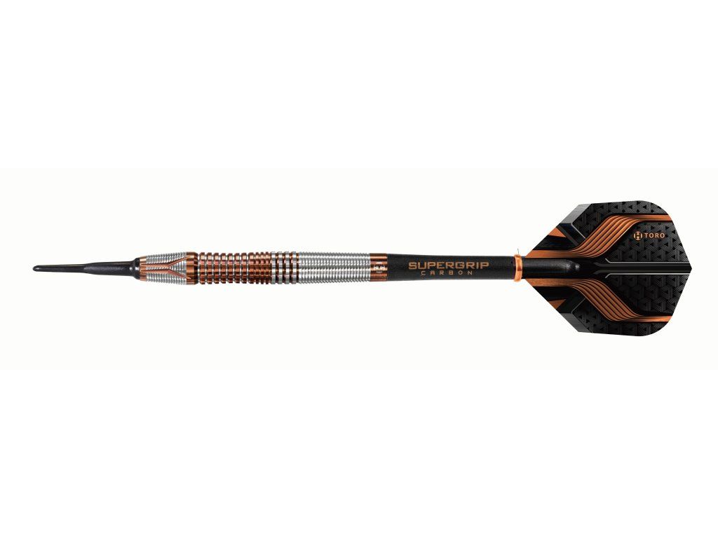 Šipky Toro jsou doplněny karbonovými násadkami Supergrip Carbon midi a novými 100mikronovými letkami Toro.