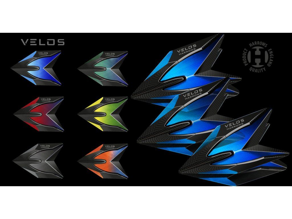 Velos mají bezkonkurenční aerodynamiku, kterou se vývojovému týmu Harrows podařilo vytvořit po důkladné a komplexní analýze. Ačkoli letky Velos mají stejnou plochu (10,03 cm2) jako standardní letky, jsou vpředu užší a mají menší rozpětí. Stabilitu zajišťují prodloužené špičky křídel a snížený střed letky. Nový důmyslný tvar zlepšuje stabilitu, rychlost i dráhu letu.